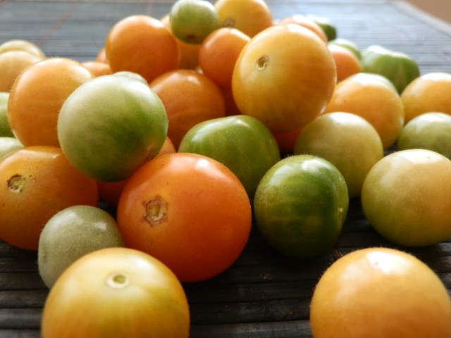 intanto oggi ho completato la raccolta, ricavandone due etti e mezzo di pomodorini dal verde all’arancio tiepido che non ho avuto il cuore di buttare